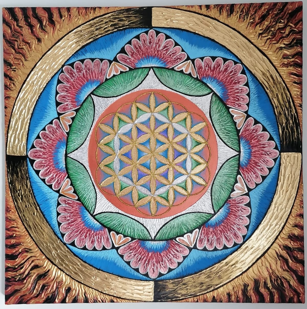 On lumoava geometrinen kuvio, joka koostuu 19 risteävästä ympyrästä. Nämä ympyrät ovat tasaisin välein ja luovat monimutkaisen kukkakuvion. Tämä symboli edustaa koko elämän kiertokulkua syntymästä kuolemaan ja uudestisyntymiseen.